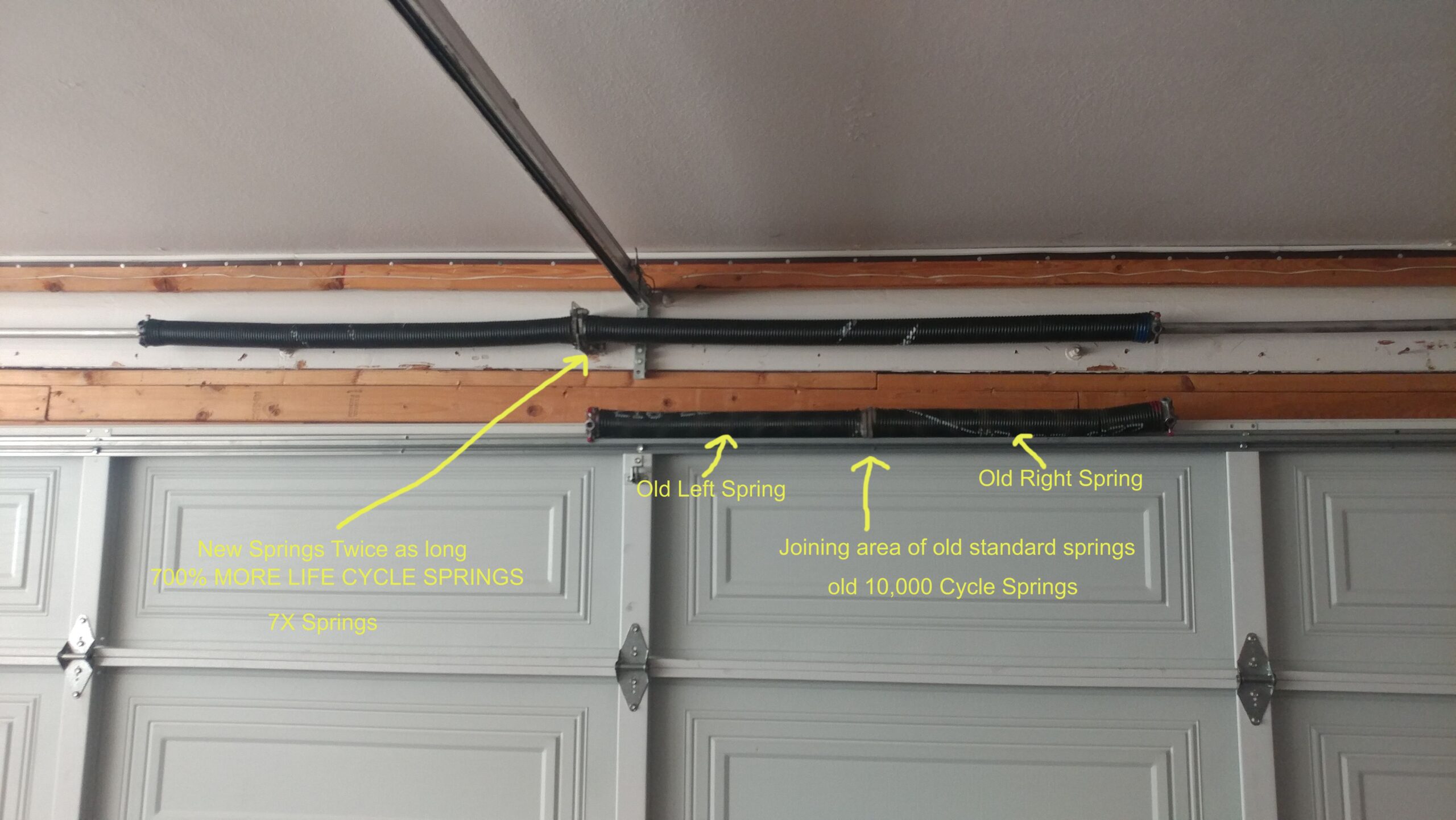 See the pictures below for a visual presentation of what this difference in garage door springs look like in the real world.